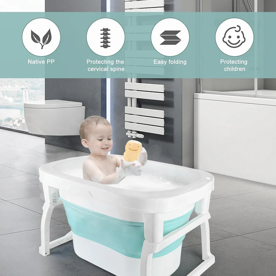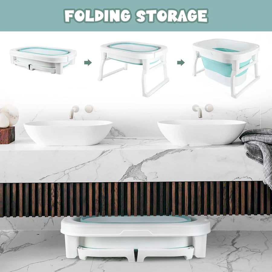 حمام الأطفال القابل للطي، المصمم لتوفير الراحة والأمان لطفلك أثناء الاستحمام. سهل التخزين، مع نظام تصريف مدمج، ويوفر تجربة استحمام ممتعة وآمنة.