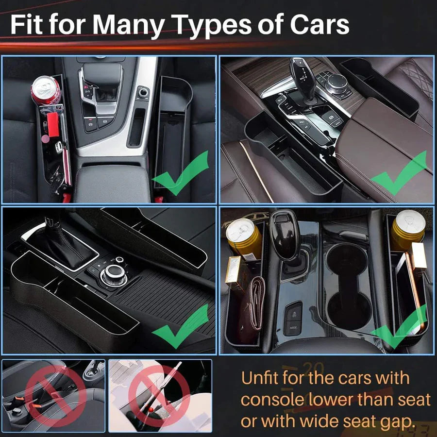 Easy to Install -- Just insert the car seat side storage into the gap between the seat and console. You can also use the adhesive pad to install it. (Please measure the car seat gap before ordering)