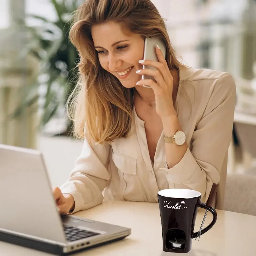 Enjoy a personal fondue experience with this ceramic fondue mug, perfect for melting chocolate, cheese, butter, or caramel. Just place your favorite dipping ingredient, light a tea light candle (not included), and enjoy with fruits, bread, or cookies.