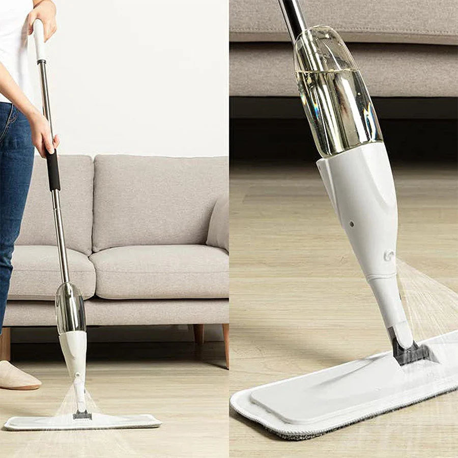ممسحة رش ذكية تجمع بين البساطة والكفاءة، مزودة برأس مسطح ودوار 360° للوصول إلى كل الزوايا، وقنينة قابلة لإعادة التعبئة، مع قطعة قماش ميكروفايبر قابلة للغسل – مثالية لجميع أنواع الأرضيات.